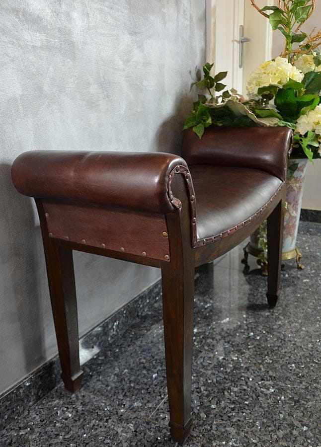 Ця лавка є ідеальним сидінням для передпокою, спальні чи вітальні, введення елемента розкоші та класу всередині. натуральна шкіра та тверда дерев’яна конструкція гарантують довговічність та комфорт роками. Це предмет меблів, який не тільки виконує функціональну функцію, але й підкреслює витонченість будь -якого інтер’єру.
