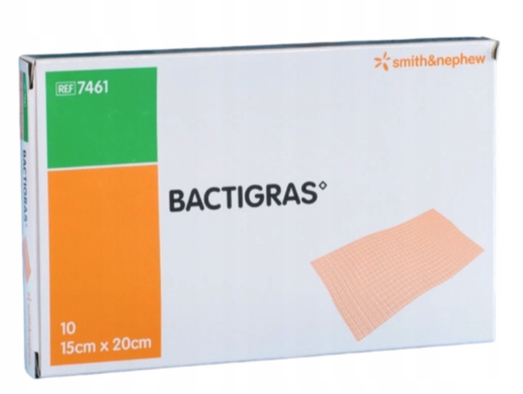 Bactigras - це медичний продукт для використання для ран, що загрожують зараженням, наприклад. невеликі опікові рани, смикані або стирання. Bactigras діє як бар'єр між рани та додатковою заправкою. Це дозволяє відтікати виділення до зовнішньої заправки, яка його поглинає. Антисептичний заправка з слабко сплетеною марлею, просочується м'яким парафіном з 0,5% розчином хлоргексидину ацетату. Хлологексидин - це дезінфікуючий засіб, що застосовується на шкірі, слизових оболонках та ранах. Антисептичний ацетат хлоргексидину, що вивільняється, поступово з вчиненого ефекту бактерициди на грампозитивні та грамнегативні бактерії. Парафін -заправка Bactigras -це стерильний продукт, призначений для використання в один час. Опік (максимум 10% поверхні шкіри), ривки рани, потертості, трансплантації та пожертвування, радіаційне пошкодження.