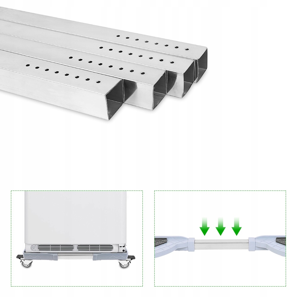 Висока місткість: рухома колісна база має труби з нержавіючої сталі, які мають високу несучу здатність, витримують до 551 фунтів побутової техніки. Ідеально підходить для розміщення/переміщення пральної та сушильної машин, холодильників, пральних машин, кондиціонерів, шаф, морозильних камер тощо.