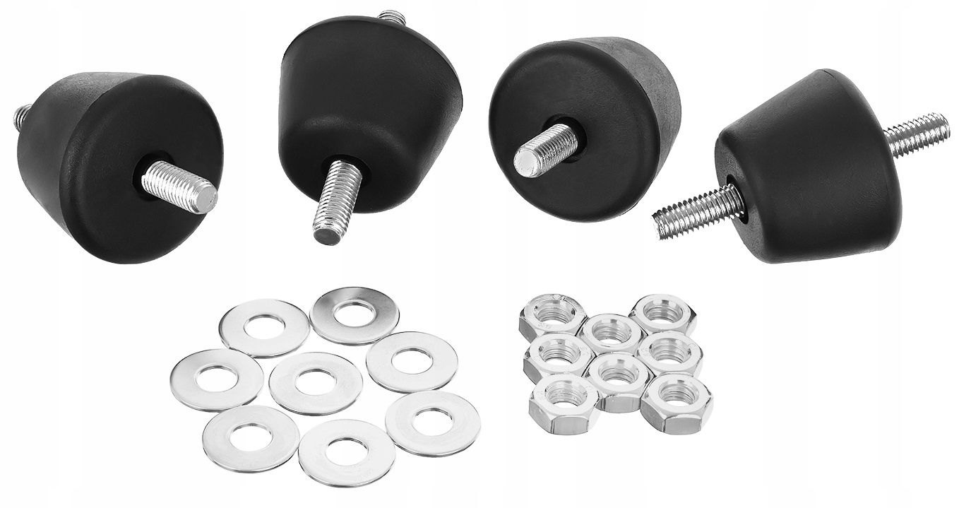 Поглинаючі шайби застосовуються в місцях, де потрібна установка додаткового демпферного елемента. Накладки зі спеціального матеріалу усувають вібрації, викликані роботою кондиціонерів, холодильних або вентиляційних пристроїв, що дозволяє встановлювати їх навіть на дуже тверді поверхні.