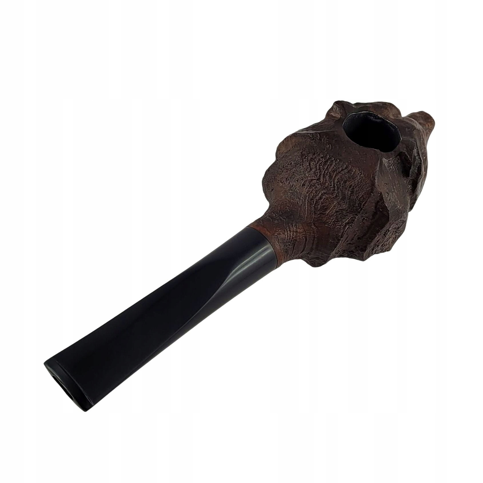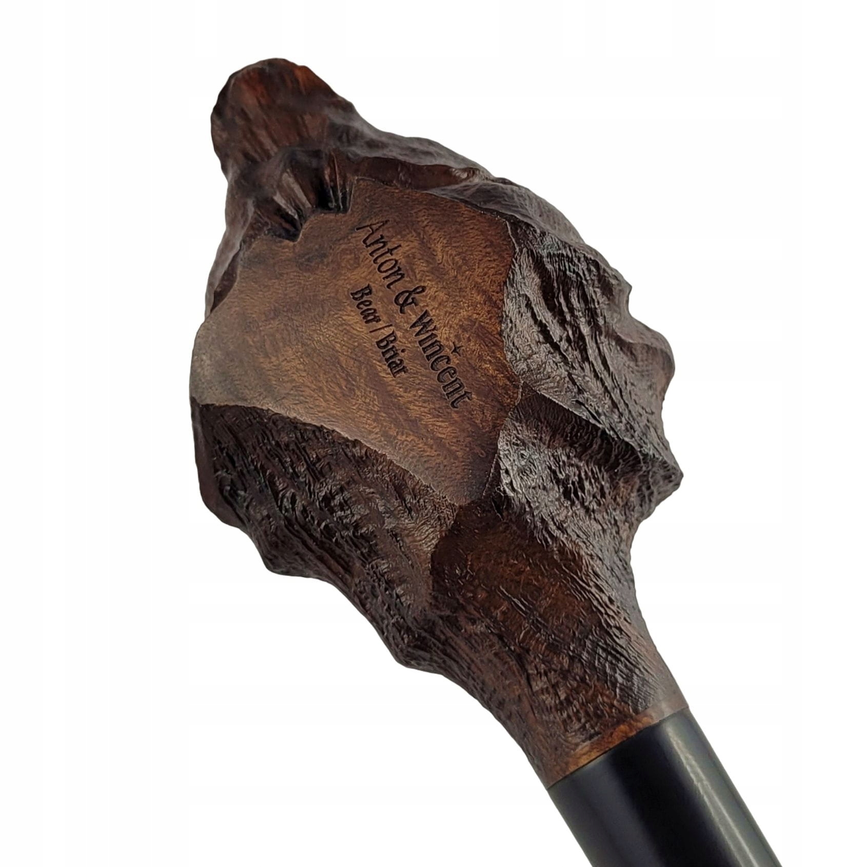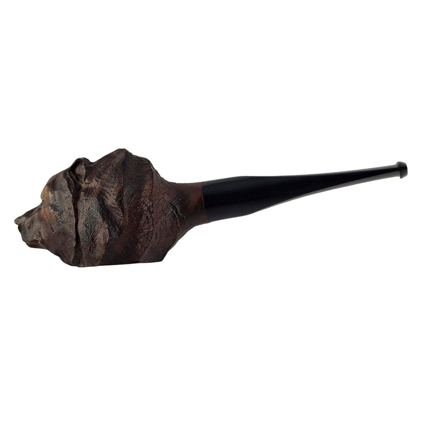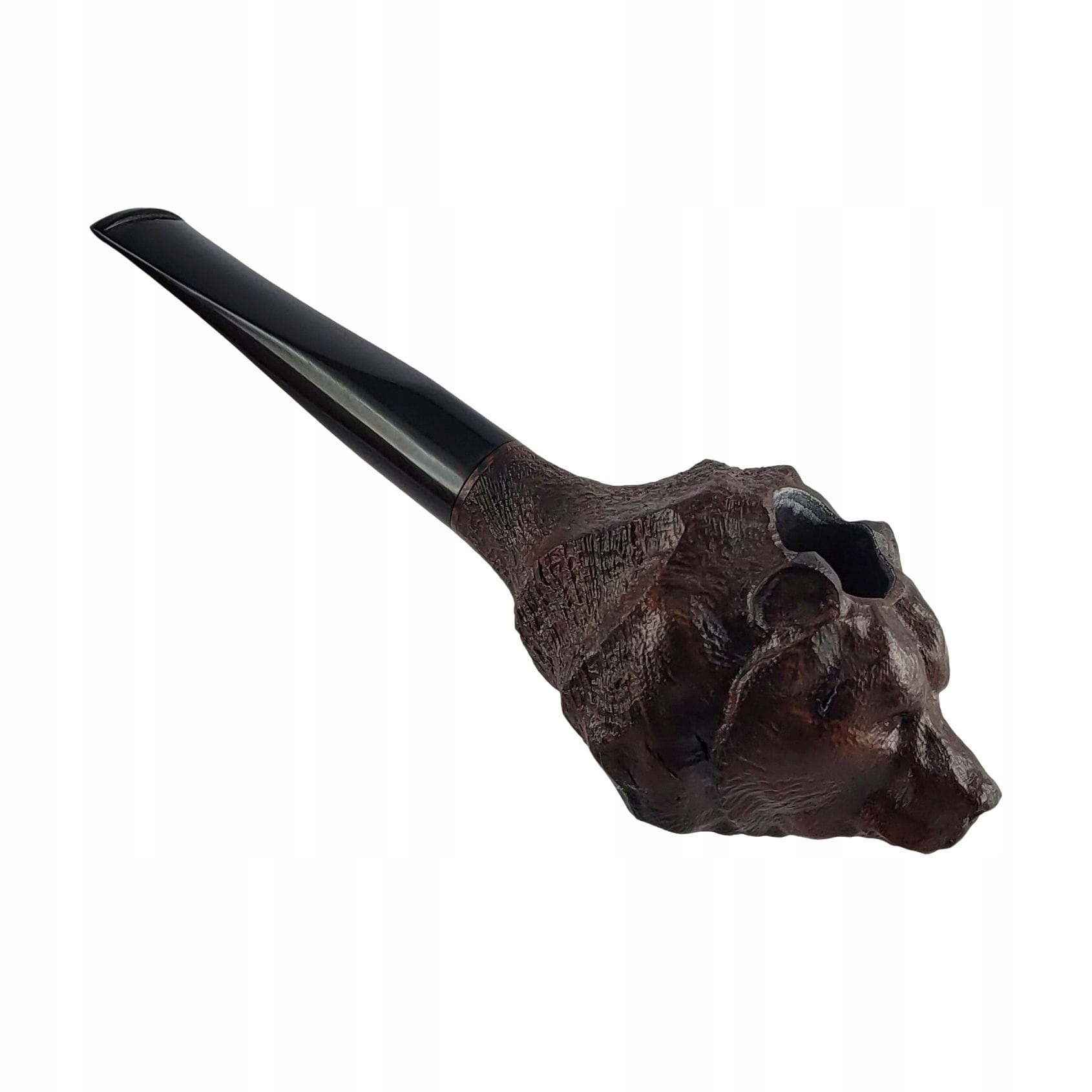 Тютюнова люлька фігурна з італійського шипшини з темною плямою. Реалістично різьблена бріарна трубка у формі голови ведмедя випромінює природну елегантність, здатна вловити деталі хутра та витончені обриси м’язів, створюючи унікальний витвір мистецтва з дерева. Поверхня шипшини захищена шаром твердого карнаубського воску та піддана піскоструминній обробці для отримання відповідного зовнішнього вигляду. Мундштук виготовлений з міцного акрилу, має місце для змінного фільтра 9 мм, а також попередньо навуглену топку. Люлька легка і зручна, упакована в тканинний чохол і елегантну подарункову коробку.