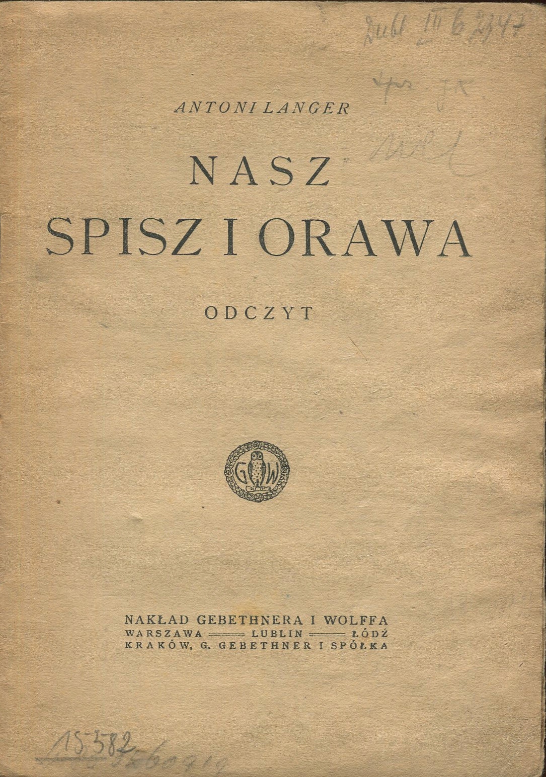 Антоні Лангер наш Шпіш та Орава. Прочитайте 1919