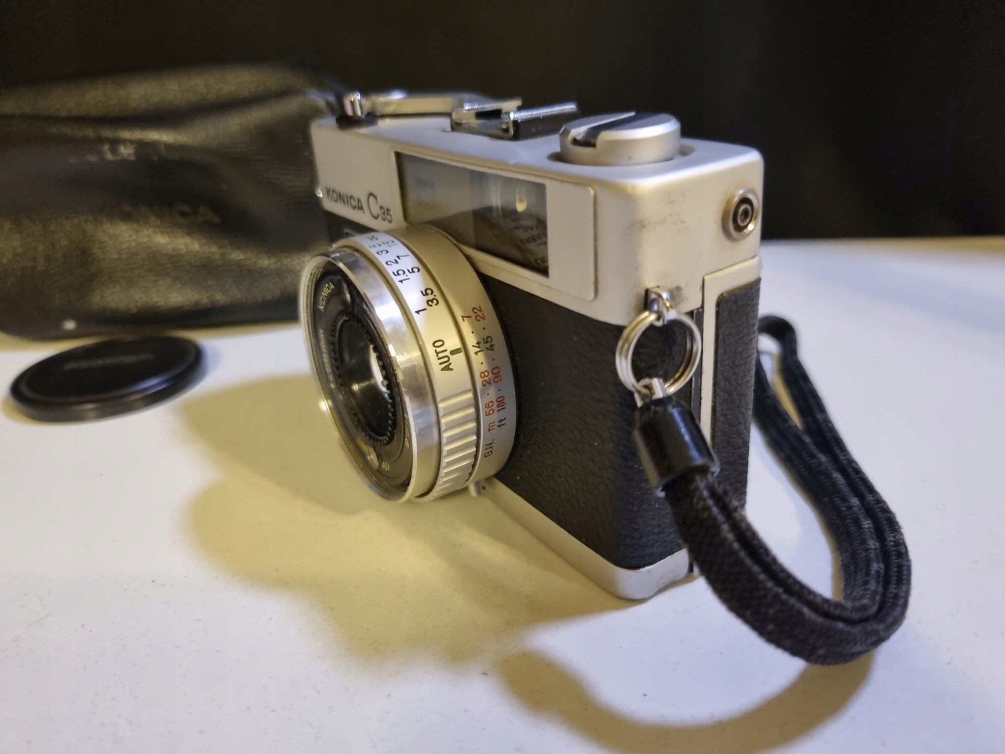 Aparat analogowy KONICA C35 AUTOMATIC z obiektywem, ładny stan wizualny