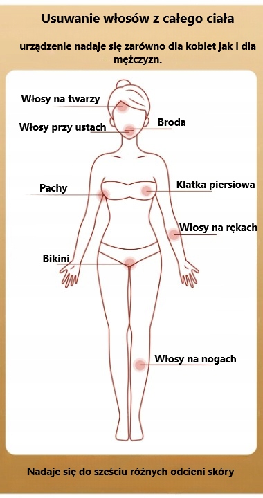 - Універсальність застосування: ідеально підходить для видалення волосся з губ, обличчя, ніг, пахвів, рук, а також лінії бікіні, що пропонує всебічне рішення для всього тіла. Проникаючі волосяні фолікули та вибірково поглинаються меланіном, що гарантує високу ефективність лікування. 4 і легко маневрувати ручкою забезпечує зручність використання навіть у важких для досягнення місця.