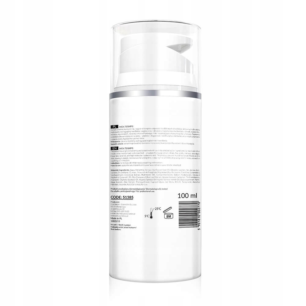 API - Чоловіки Terapis - це зволожуюча сироватка, створена спеціально для чоловіків, поєднує в собі силу природи з вдосконаленою косметичною технологією. Продукт багатий оливковою олією, мінералами з Мертвого моря, гіалуронової кислоти, керамідів та олії баобабу , забезпечує всебічну допомогу всіх типів шкіри, особливо тих, що потребують гідратації та підняття.
