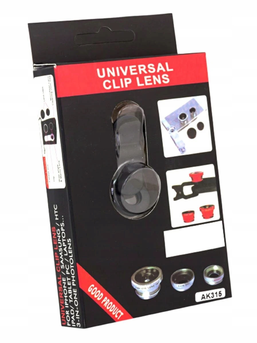 - Набір підходить до всіх телефонів та планшетів, доступних на ринку (відстань від центру об'єктива камери до краю пристрою не може перевищувати 25 мм)! Рибне око, ширококутне кут, що дозволяє здійснити різні спотворення зображення. Li>