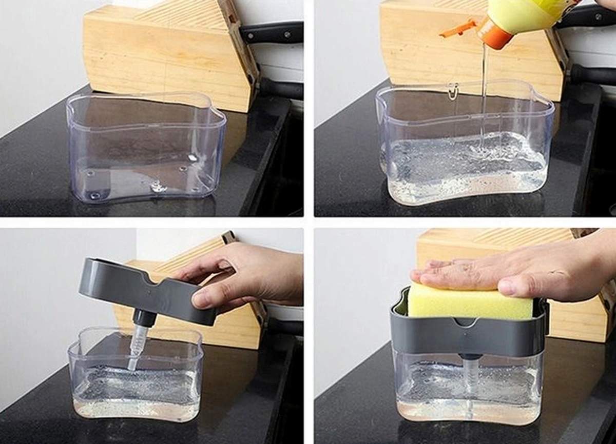 Більше ніякого безладу навколо раковини! Завдяки цьому інтелектуально сконструйованому дозатору ви не будете розливати миючий засіб.