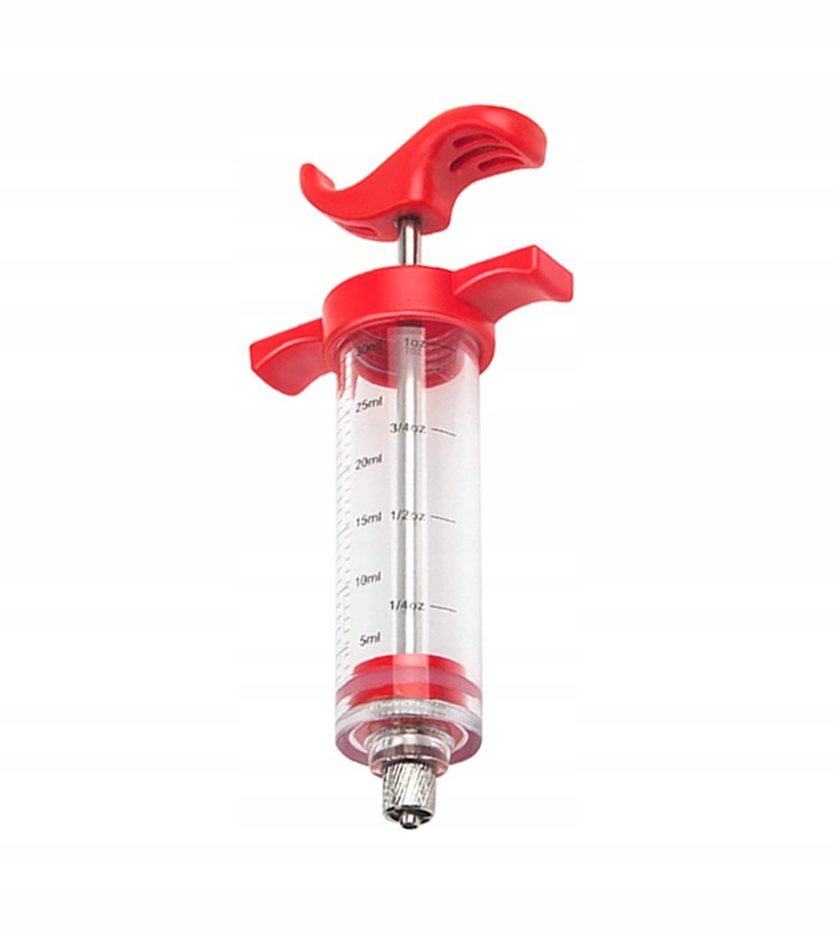 Шприц для маринування ємністю 30 мл, оснащений 3 сталевими голками різного типу. Швидко та зручно збагачує смак м'яса шляхом введення маринадів, соусів або спецій.