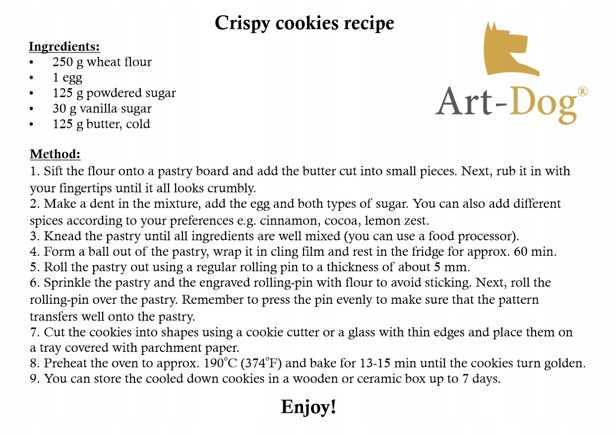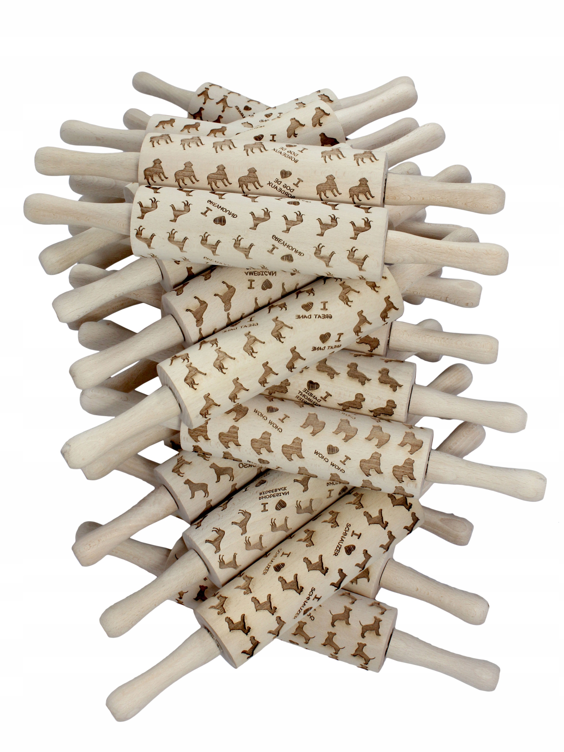 Ці компактні валики, менші за стандартні, виготовлені з дерева і мають точно гравіровані візерунки, що зображують цілі силуети расових собак. Вони ідеально підходять для дітей, які хочуть брати участь у кухонних іграх. За кілька моментів вони можуть прикрасити печиво з прекрасними конструкціями, що робить випікання приємною діяльністю для всієї родини.