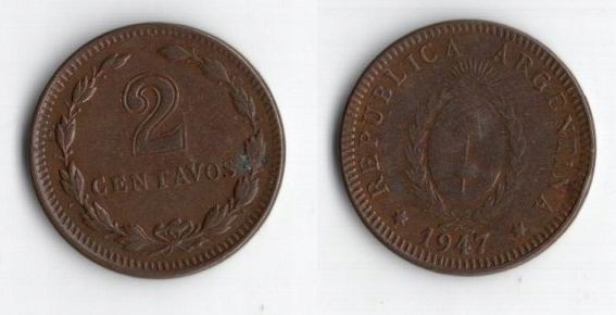 АРГЕНТИНА 1947 2 СЕНТАВО