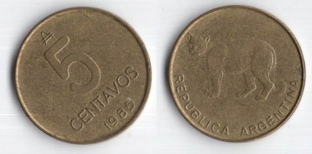 АРГЕНТИНА 1985 5 СЕНТАВО ГРУБ