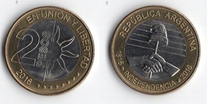 АРГЕНТИНА 2016 2 ПЕСО НЕЗАЛЕЖНІСТЬ