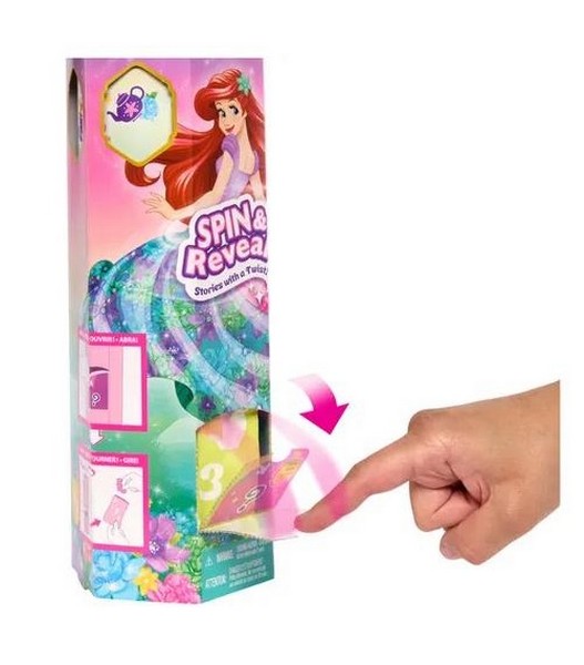 Прикрасьте пейзаж наклейками та використовуйте його як фон для дивовижної гри в саду з лялькою та аксесуарами. Шанувальники можуть зібрати всіх ляльок Disney Princess Spin and Discover, щоб пережити незліченні чарівні пригоди.