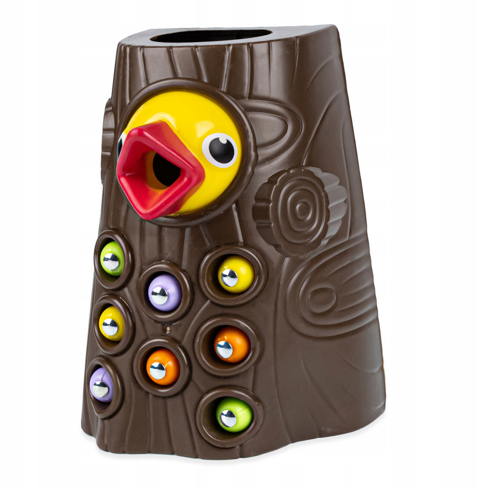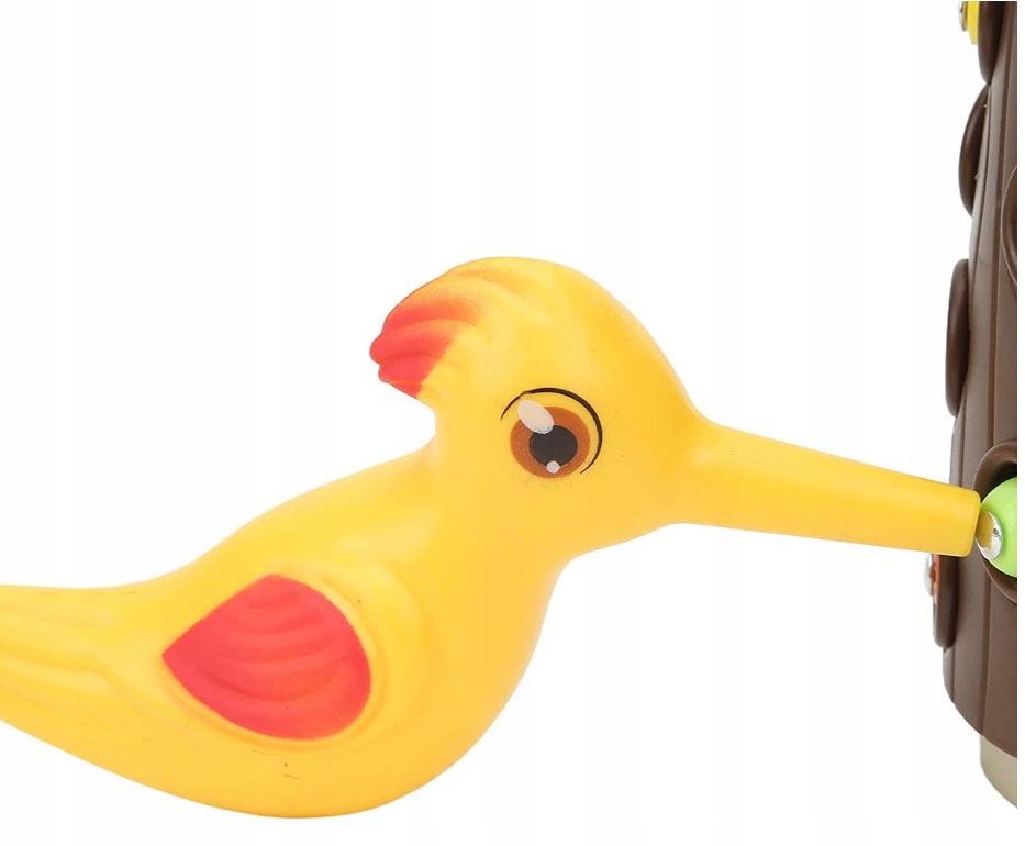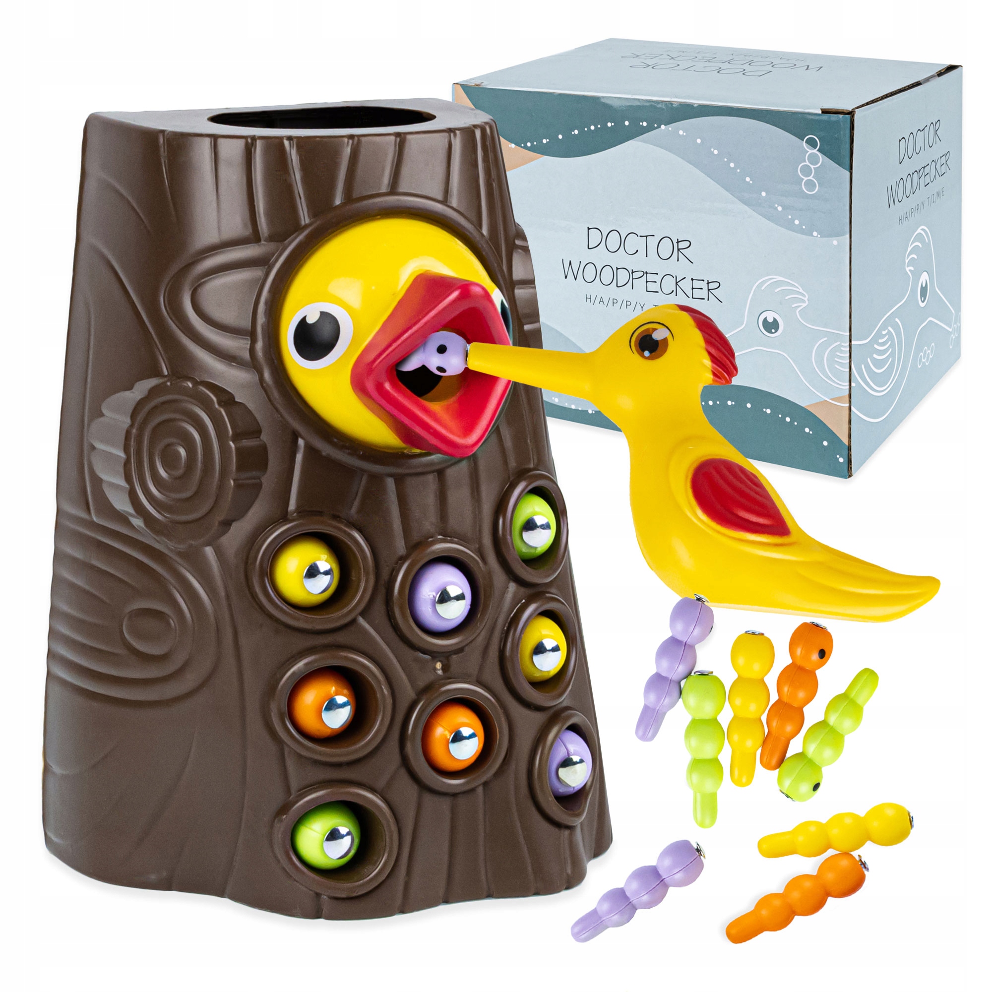 Набір містить різнокольорових черв'яків з магнітами, яких ми піднімаємо за допомогою дзьоба дятла, а потім поміщаємо в дзьоб пташки з дупла. Хробаків зберігаємо в отворах стовбура. Це додаткове завдання, малюк повинен не тільки дістати хробака, а й помістити його в отвір у стовбурі.Він може вільно пересувати і сортувати хробаків.Така забава не швидко набридне. ! :)