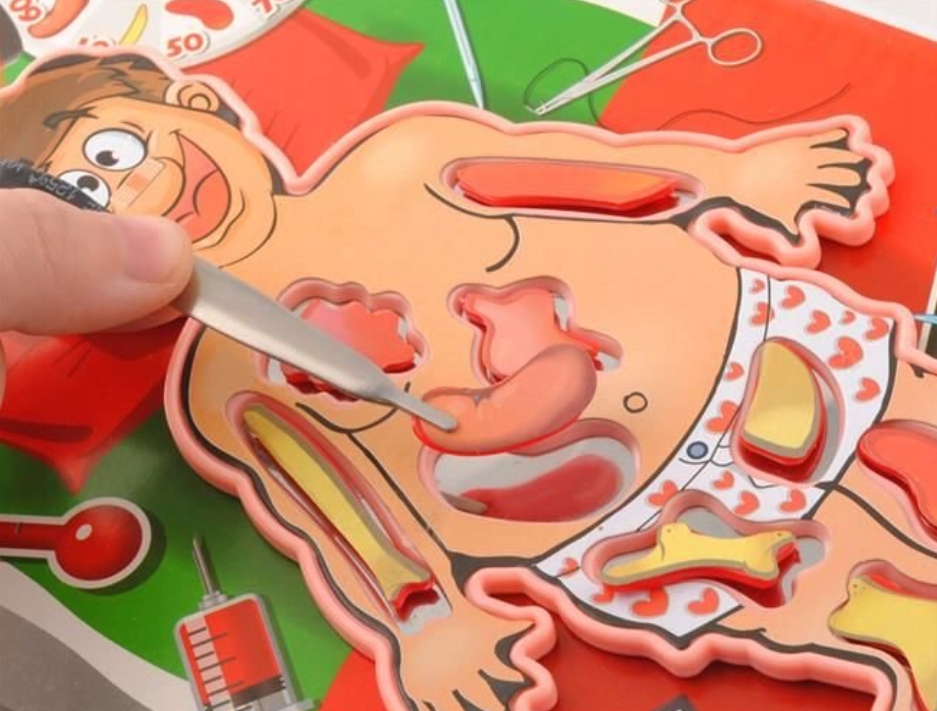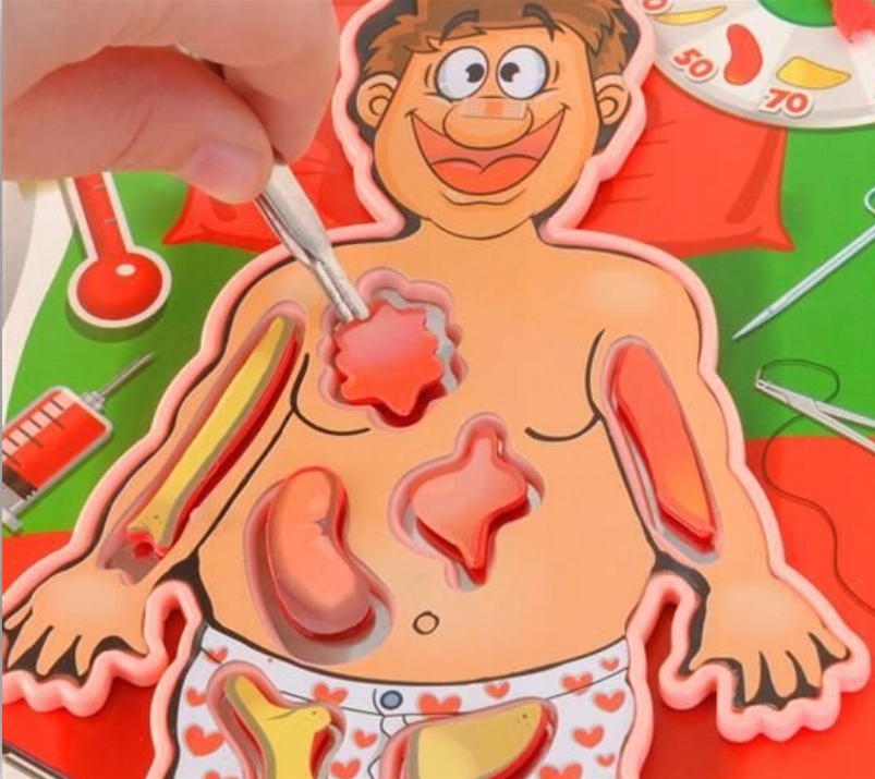 - Аркадна гра, яка чудово розвиває ручні навички та дарує масу задоволення. Використовуйте кружечок, щоб вибрати частину тіла, візьміть пінцет і спробуйте витягнути його, не торкаючись металевої пластини - інакше пацієнт почне тремтіти, і ваша черга втрачена.