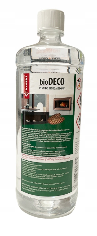 1 літр біопалива горить 2-5 годин - залежно від розміру полум'я. Це ефективне і відносно дешеве джерело енергії. Вже через кілька хвилин використання відчувається помітне підвищення температури в приміщенні. Додатковою перевагою біопалива є відсутність сажі або золи, яка утворюється при спалюванні в традиційних камінах. Для спалювання біопалива не потрібні спеціальні камінні труби. Йому потрібен лише - як і в інших пристроях з відкритим вогнем - постійний приплив повітря. Також біокамін можна використовувати для ароматерапії. Біопаливо не сушить повітря, а зволожує його. Додаючи ароматичні масла, ми можемо використовувати біокамін як цілющий засіб. Чарівність і чарівність каміна створює затишну атмосферу у вашому домі та є джерелом відпочинку. Біопаливо – польський продукт, 100% екологічний. Випускається в упаковках по 1 л.