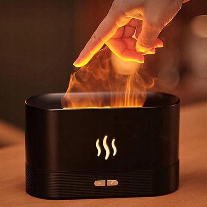 Поєднує барвисті світильники та водяний туман з ультразвуковими коливаннями, щоб імітувати заспокійливий ефект полум'я, додаючи тепло та атмосферу в будь -яку кімнату.