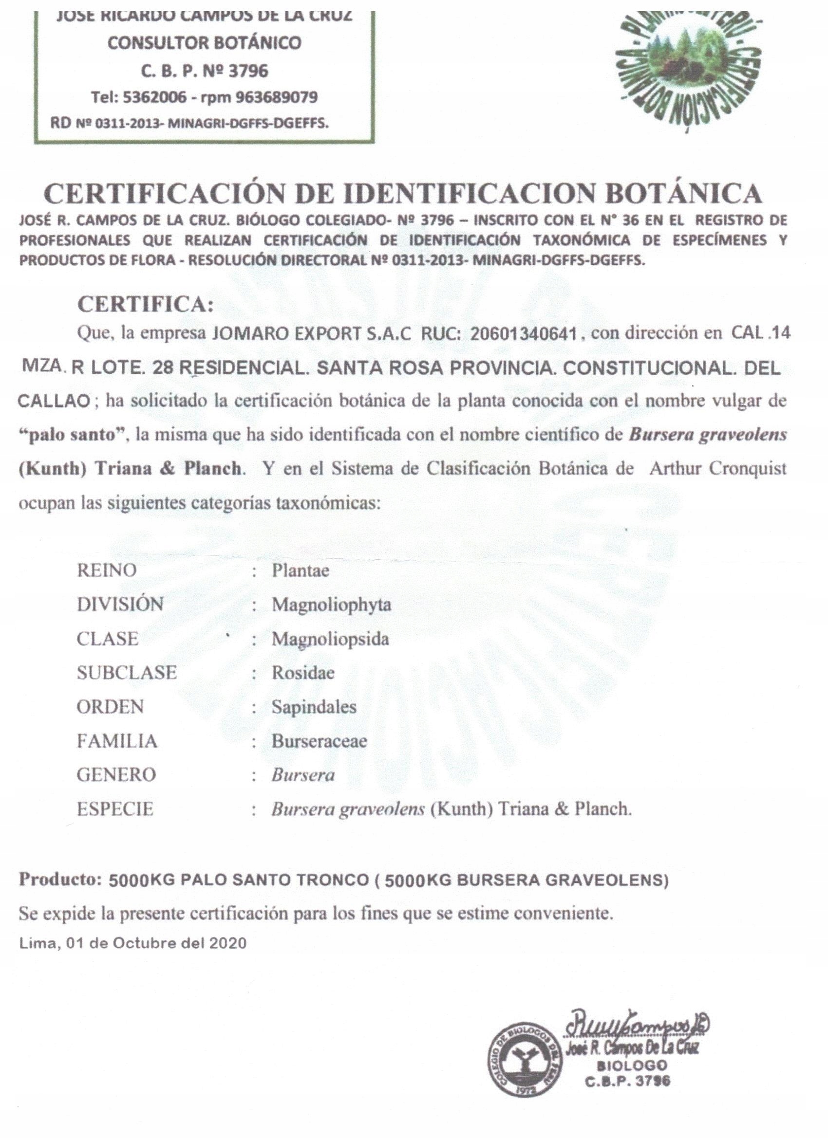 *Збирання деревини Palo Santo є практика регулюється урядом Перу.