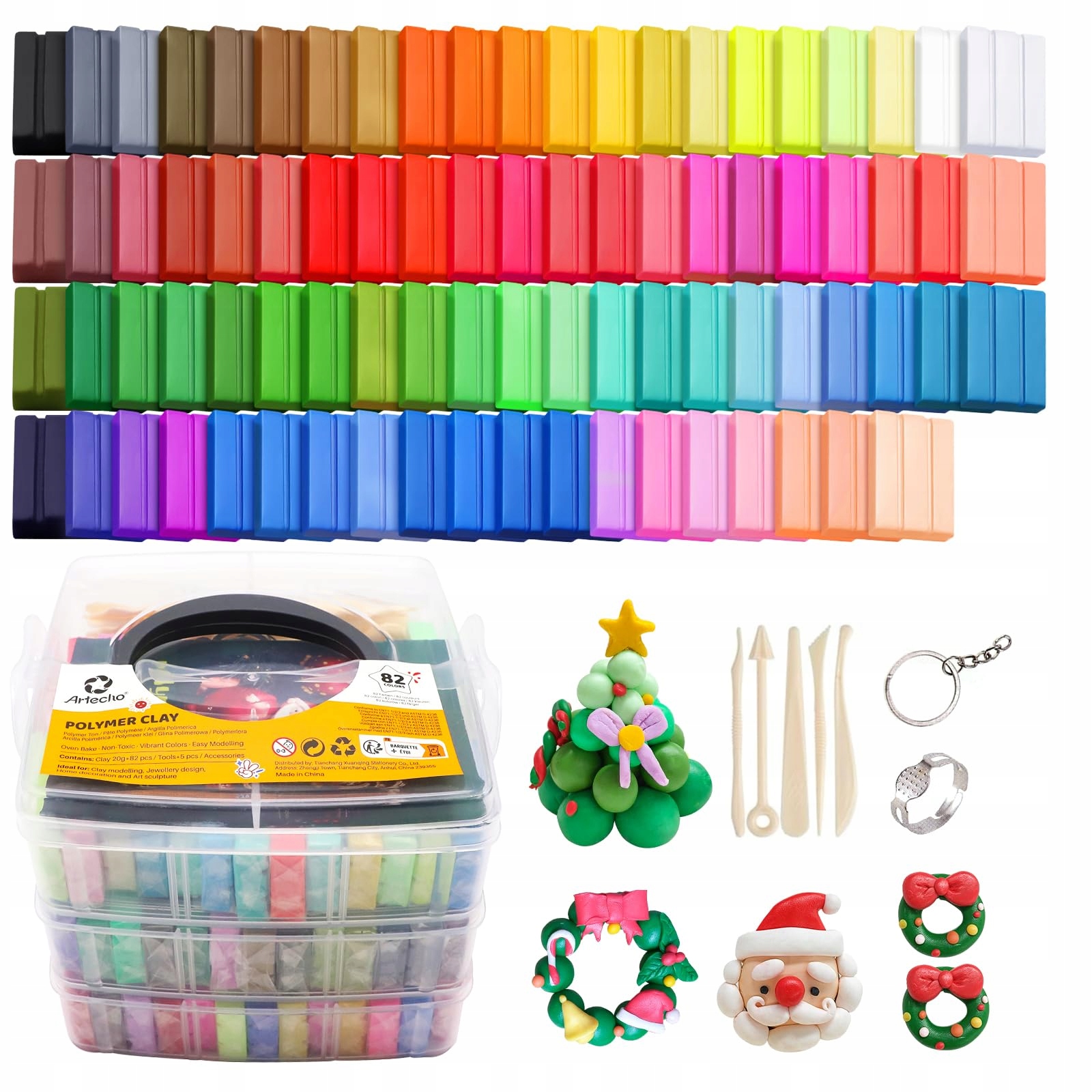 Набір полімерної глини Artecho, 82 кольори для випічки в духовці, модельний комплект з 5 інструментами різьблення глини та 31 аксесуарами, дизайном ювелірних виробів, оформленням внутрішніх справ та художньою скульптурою