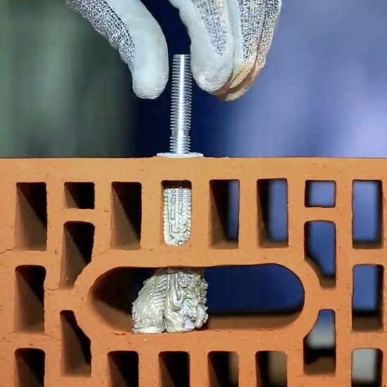 - Європейська технічна оцінка охоплюється лише кріпленням лише за допомогою різьбових стрижнів у кладці.