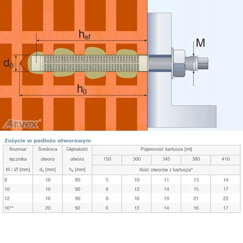 Момент якоря ARVEX CPS 300 мл - це хімічний продукт, заснований на поліестерній смолі, призначений для прив’язки різьбових стрижнів у середньому діапазоні навантаження як у внутрішній, так і у зовнішній конструкції.