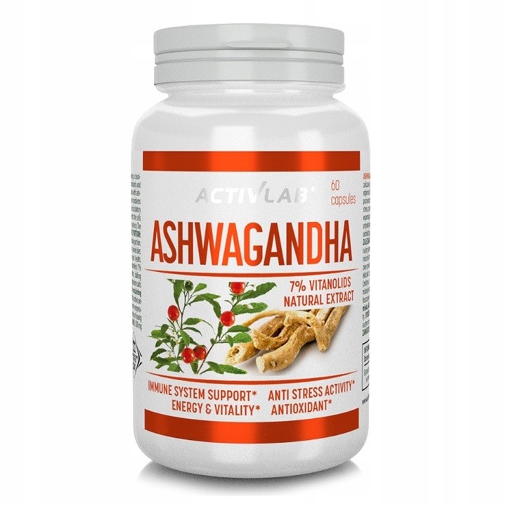 Activlab Ashwagandha - натуральний оздоровчий препарат, властивості якого є результатом використаного в ньому екстракту Ashwagandha, високо стандартизованого до 7% вітанолідів. Кожна порція є багатим джерелом багатьох біологічно активних речовин, вплив яких на організм і його внутрішнє заспокоєння є дуже важливим. Це також сприяє поліпшенню самопочуття і знижує негативний вплив стресу. Це один з найкращих адаптогенів рослинного походження, роль якого полягає в підтримці організму в швидкій адаптації до умов навколишнього середовища, в яких йому доводиться функціонувати (наприклад, великі дози стресу щодня). Варто зазначити, що він також покращує пам’ять і концентрацію, тому його часто використовують люди, які готуються до іспитів і працюють, як правило, розумово.