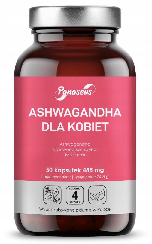 Інгредієнти: Екстракт кореня ашваганда (Withania somnifera) 10:1, наповнювач: мікрокристалічна целюлоза, екстракт кореня ашваганди (Withania somnifera), стандартизований для вмісту мін. 10% витанолідів, екстракт листя червоної конюшини (Trifolium pratense) 10:1, екстракт листя червоної малини (Rubus ideaus) 10:1 Капсула: рослинна целюлоза (вегетаріанська).