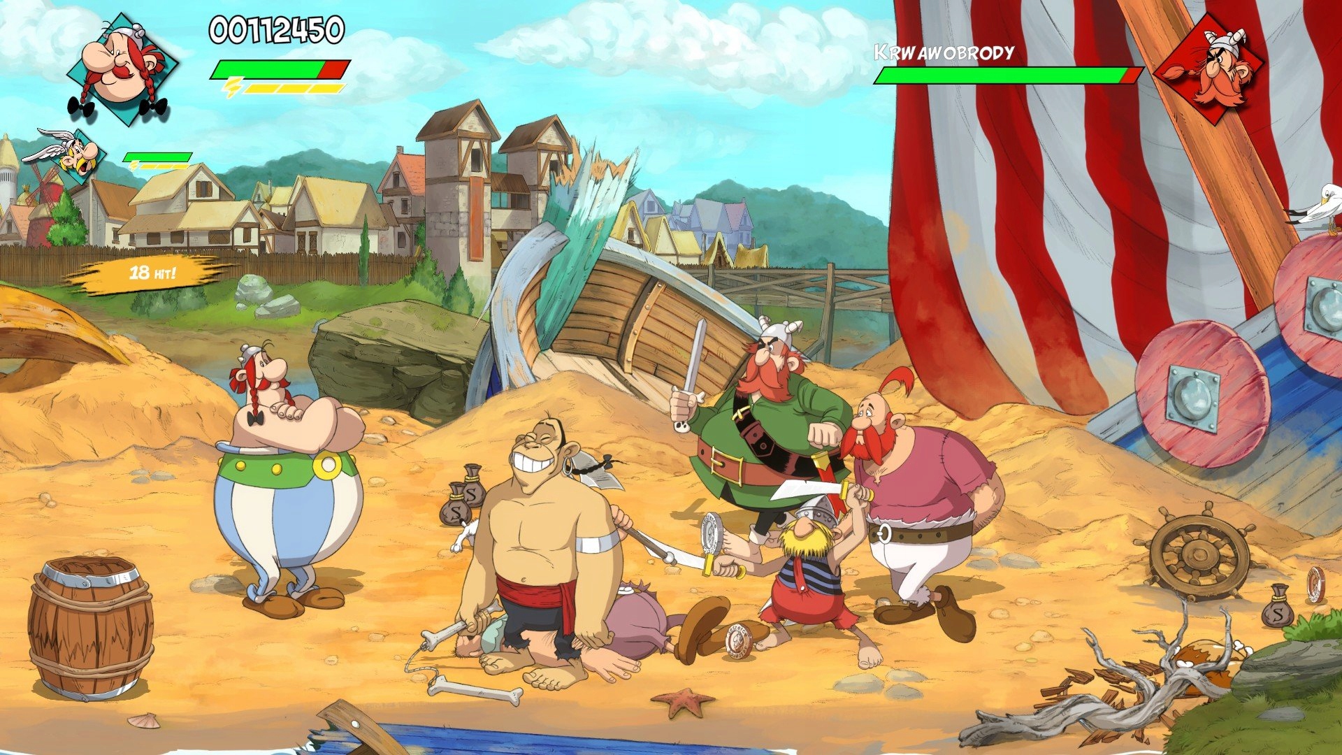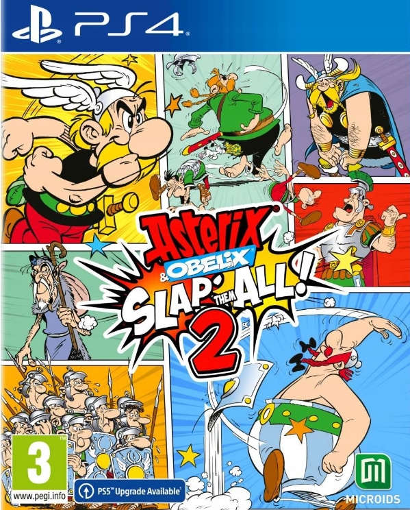 Астерікс і Обелікс: дай їм усіх ляпасів! 2Подвійна доза битви! Мирне життя Астерікса, Обелікса та інших жителів села переривається неочікуваним візитом Драчників, які прийшли просити допомоги. Він повідомляє нашим героям, що його батька - Океаноніка - відправили до римської в'язниці за крадіжку, якої він не скоював... Викрадено орел Лютеції, безцінну золоту емблему римських легіонів, і звинуватили невинну людину! Астерікс обіцяє розслідувати цю справу і просить Драчника залишитися в селі заради його власної безпеки. Двоє галльських воїнів вирушили до Лютеції, щоб отримати інформацію від друга, який знає про всі інтриги та плітки в місті... І, знаючи наших героїв, добра доза влучних підштовхувань швидко наблизить їх до відповідей, які вони мають. шукають під час своєї подорожі! Астерікс і Обелікс – дай їм усім ляпаса! 2 - динамічна гра Beat'em Up з оригінальним сюжетом. По дорозі до місця призначення ви відвідаєте багато різних місць: забуті руїни в темному лісі, найбільший римський табір, коли-небудь побудований, і навіть Лютецію... Ви подорожуєте в далекі країни, наповнені різноманітними пейзажами, численними зустрічами та, звичайно, наповнений потрібною кількістю боїв! Все це супроводжується оригінальними анімаційними катсценами, які роблять сюжет ще цікавішим! Астерікс і Обелікс – дай ляпас їм усім! 2 виводить бої на новий рівень із більшою кількістю ворогів і босів, а також багатьма новими функціями та покращеннями ігрового процесу. Крім унікальних рухів, Астерікс і Обелікс можуть «заряджатися», щоб виконувати більш динамічні та плавні атаки. Вони також мають у своєму розпорядженні режим люті та нищівну останню атаку. Не кажучи вже про можливість руйнування деяких елементів навколишнього середовища та кидання бочок і менгірів під час бою! Римляни та інші вороги - будьте насторожі! Основні особливості: - Захоплюючі дух нові рівні: від Лютеції до... кінця світу! - Динамічний, сповнений дивовижних поворотів сюжет.- Новий режим люті, який можна активувати під час бою...- ... і унікальна фінальна атака для кожного персонажа.- Нові вороги та боси, яких можна перемогти!- Можливість знищити певних елементи середовища. - Локації та персонажі, точно відтворені з коміксів. Можливість гри в режимі локальної співпраці з двома людьми.