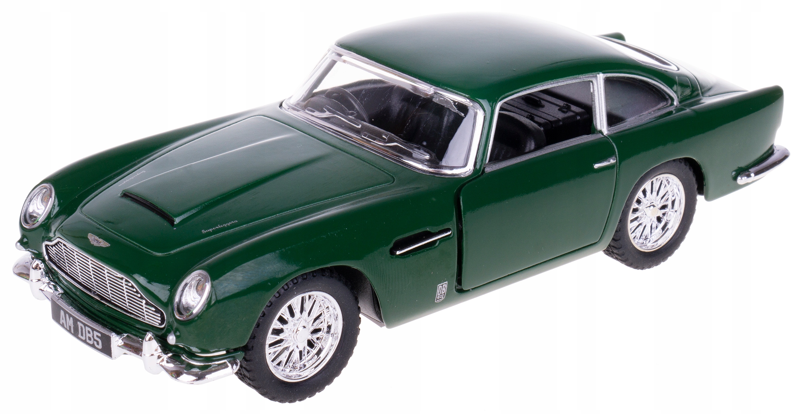 Металева модель ASTON MARTIN DB5 в масштабі 1:38 з приводом Pull Back Модель виготовлена з металу та пластику Має бокові дверцята, що відкриваються, через які можна зазирнути всередину моделі та гумка шини.