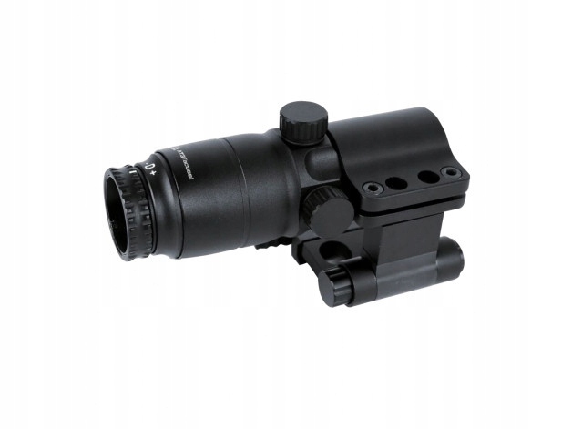 Тандемна система коліматор-збільшувач є надзвичайно популярним рішенням, головним чином завдяки своїй гнучкості. Завдяки використанню перекидного кріплення прилад легко розташовується на осі коліматора, забезпечуючи 4-кратне збільшення і можливість зручної стрільби на середні відстані. Коли пристрій не використовується, він зручно лежить на боці рушниці, не обмежуючи поле зору під час прицілювання.