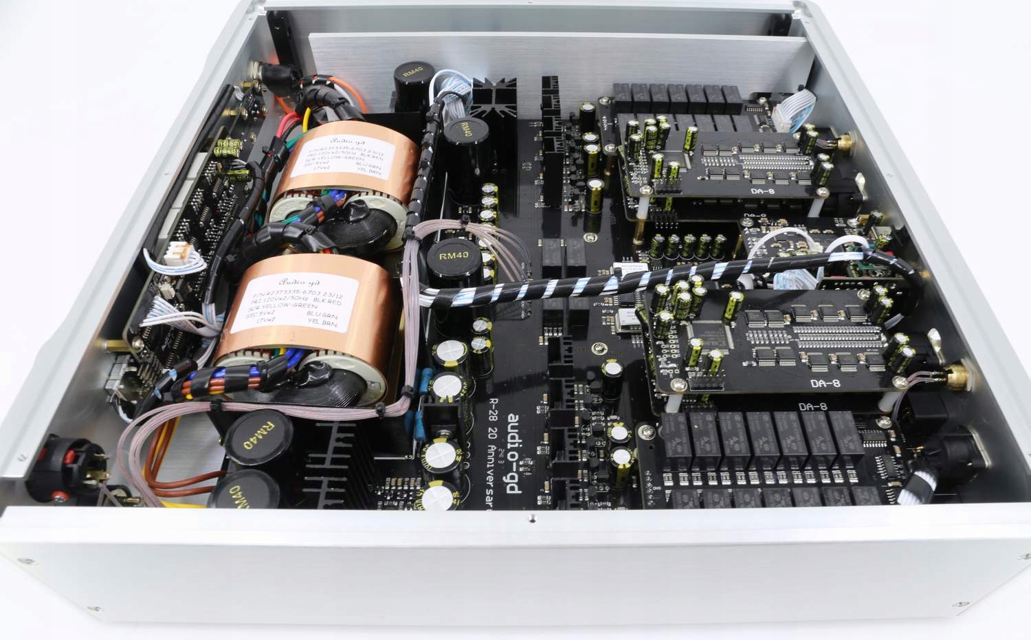 Одним із ключових елементів аудіопристроїв високого класу є блок живлення. Усі продукти Audio-GD, навіть найдешевші, оснащені багатьма непомітними спеціальними стабілізаторами, які живлять окремі складові модулі пристроїв. Для цього Audio-GD використовує у своїй продукції тороїдальні трансформатори та дискретні стабілізатори напруги. Кожен модуль R2R-2 має виділені секції трансформатора та стабілізатора, окремо для цифрової частини та для кожного каналу аналогової частини. Це рішення гарантує повне електричне розділення модулів. Немає загрози, що струму живлення буде недостатньо навіть тимчасово, що в інших пристроях проявляється в чутному обмеженні динаміки, особливо в нижніх частотах смуги прослуховування. Джерела живлення в R28 MK3 створені за допомогою двох тороїдальних трансформаторів аудіофільського класу.
