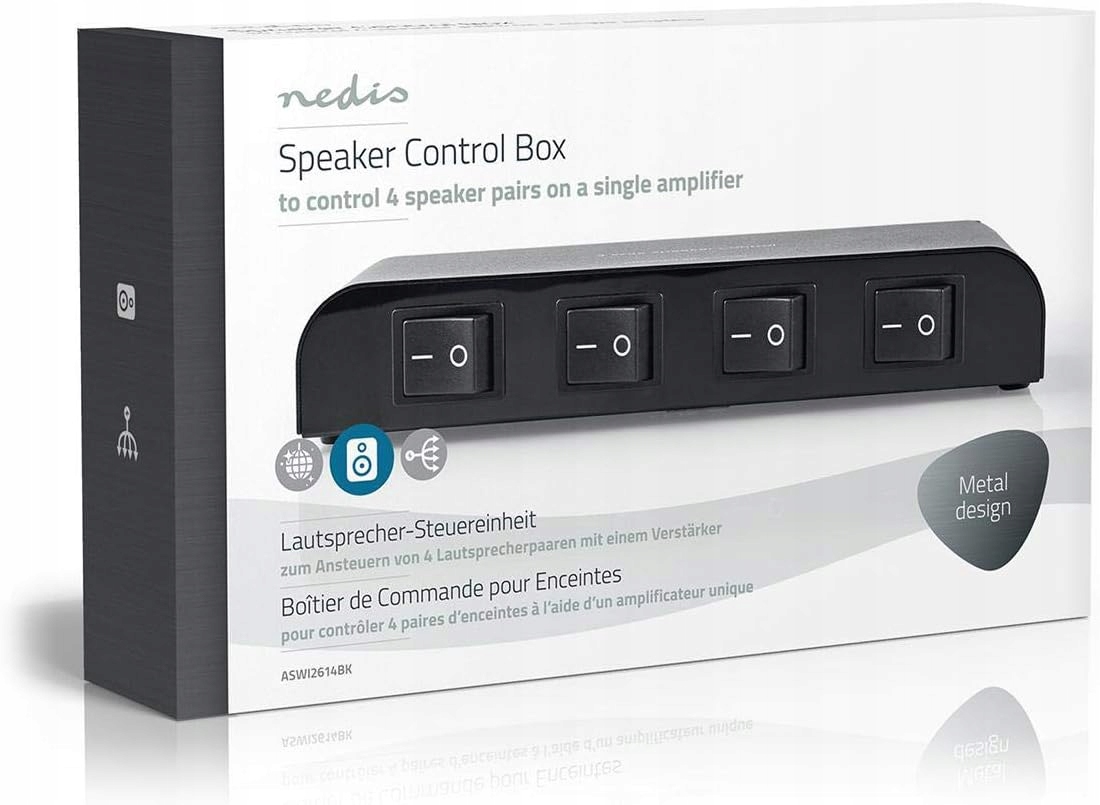 - Аудіо -перемикач nedis, чотири пар динаміків 4 ~ 16OHM, блок управління