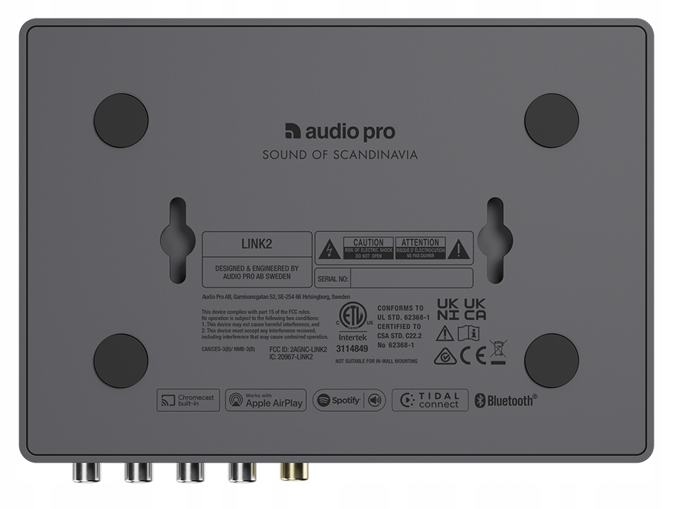 Для підключення Audio Pro Link2 до Інтернету можна використовувати вбудований роз’єм Ethernet або Wi-Fi. Дизайнери оснастили нову модель дводіапазонним модулем Wi-Fi з підтримкою частот як 2,4 ГГц, так і 5 ГГц. Таким чином ви зможете легко вибрати найкраще підключення.