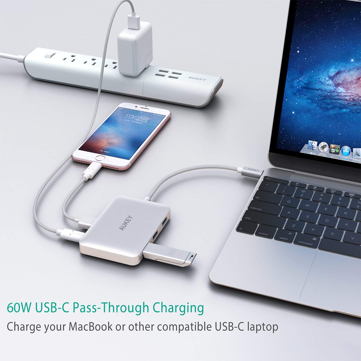 AUKEY USB C Hub HDMI 4K, 4 порти USB 3.0, порт зарядки 60 Вт типу C PD, багатопортовий адаптер 6 в 1.