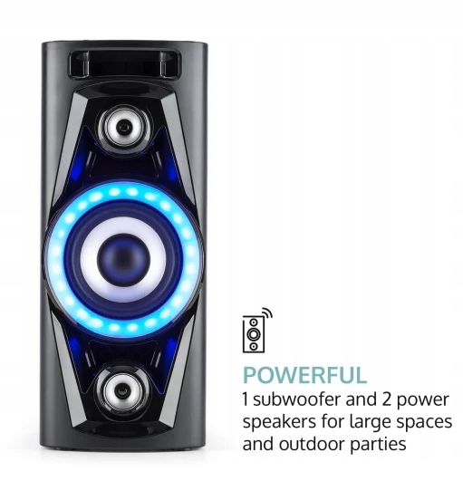 Аудіонабір вражає не лише з точки зору музики: музиканти та вуличні виконавці, безумовно, виграють від входу jack 6, 3 мм. для підключення дротового мікрофона з окремим регулятором гучності. У поєднанні з гітарним входом, гучність якого також можна регулювати окремо, аудіосистема auna PPS 35 забезпечує ідеальні умови для караоке, концертів або вуличних музикантів. Особливою перевагою є вбудоване світлове шоу у вигляді синього світлодіодного ефекту, який підсвічує колонки або підсвічує їх у ритмі музики. Завдяки цьому кожен виступ отримає відповідне налаштування.