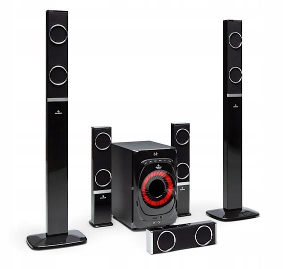 - RMS POWER: 5 x 20 W (супутники), 1 х 100 Вт (сабвуфер)
