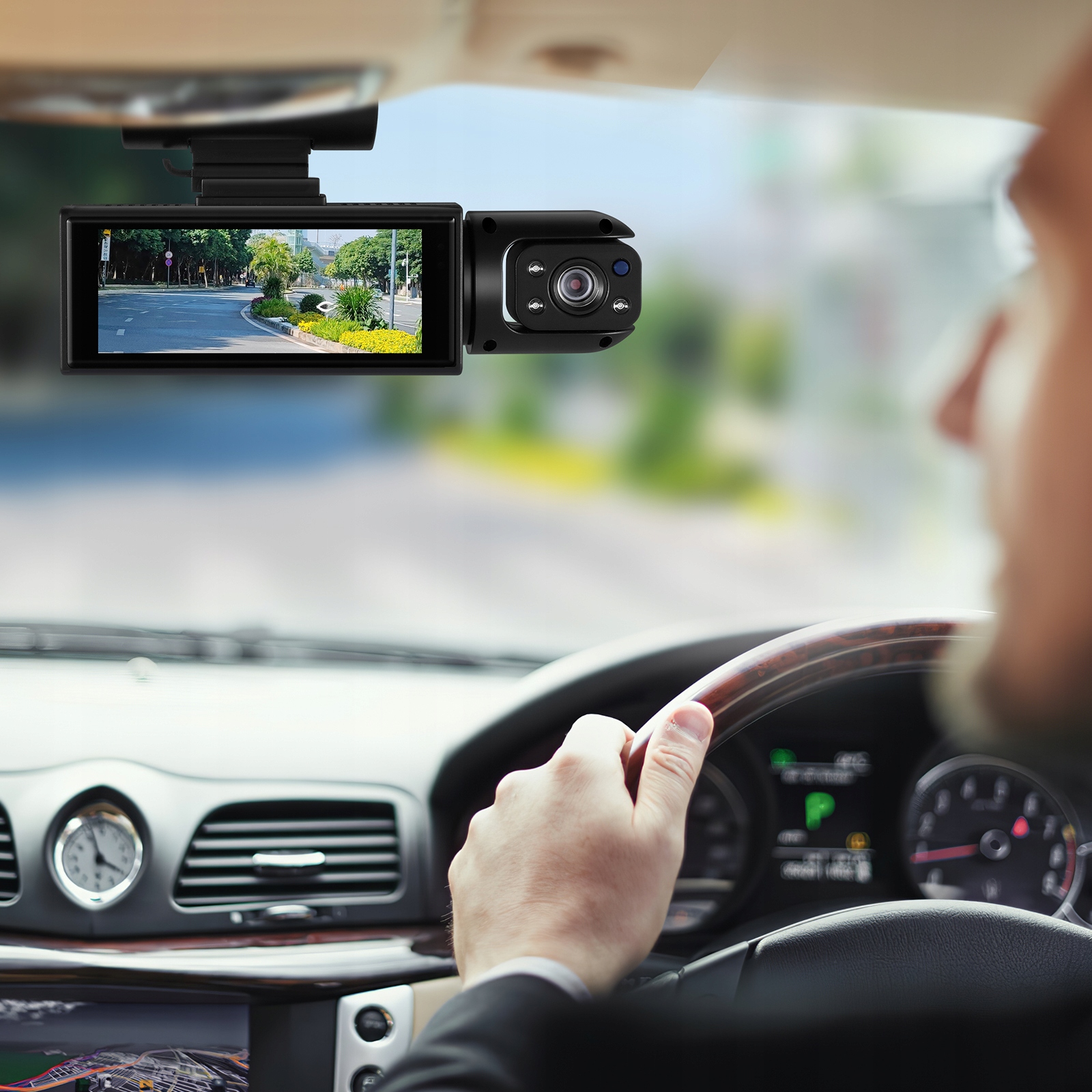 ✅Цей відеореєстратор оснащено двома камерами , один може записувати передню частину автомобіля, а інший може записувати салон автомобіля.