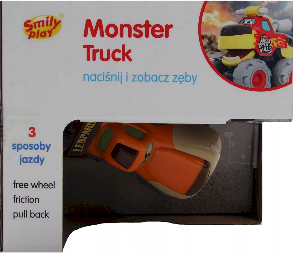 Висока якість пластику гарантує довговічність і легкість очищення. Іграшка може їздити трьома способами - фрикційним, вільним ходом і відтягуванням. При натисканні на дах автомобіля зуби вилазять, що робить гру ще цікавішою. Іграшка сприяє розвитку слуху, навичок творчої гри та стимулює відчуття малюнка. Крім того, формує дрібну моторику дитини. Smily Play Monster Truck — ідеальний подарунок, який неодмінно сподобається кожній дитині.
