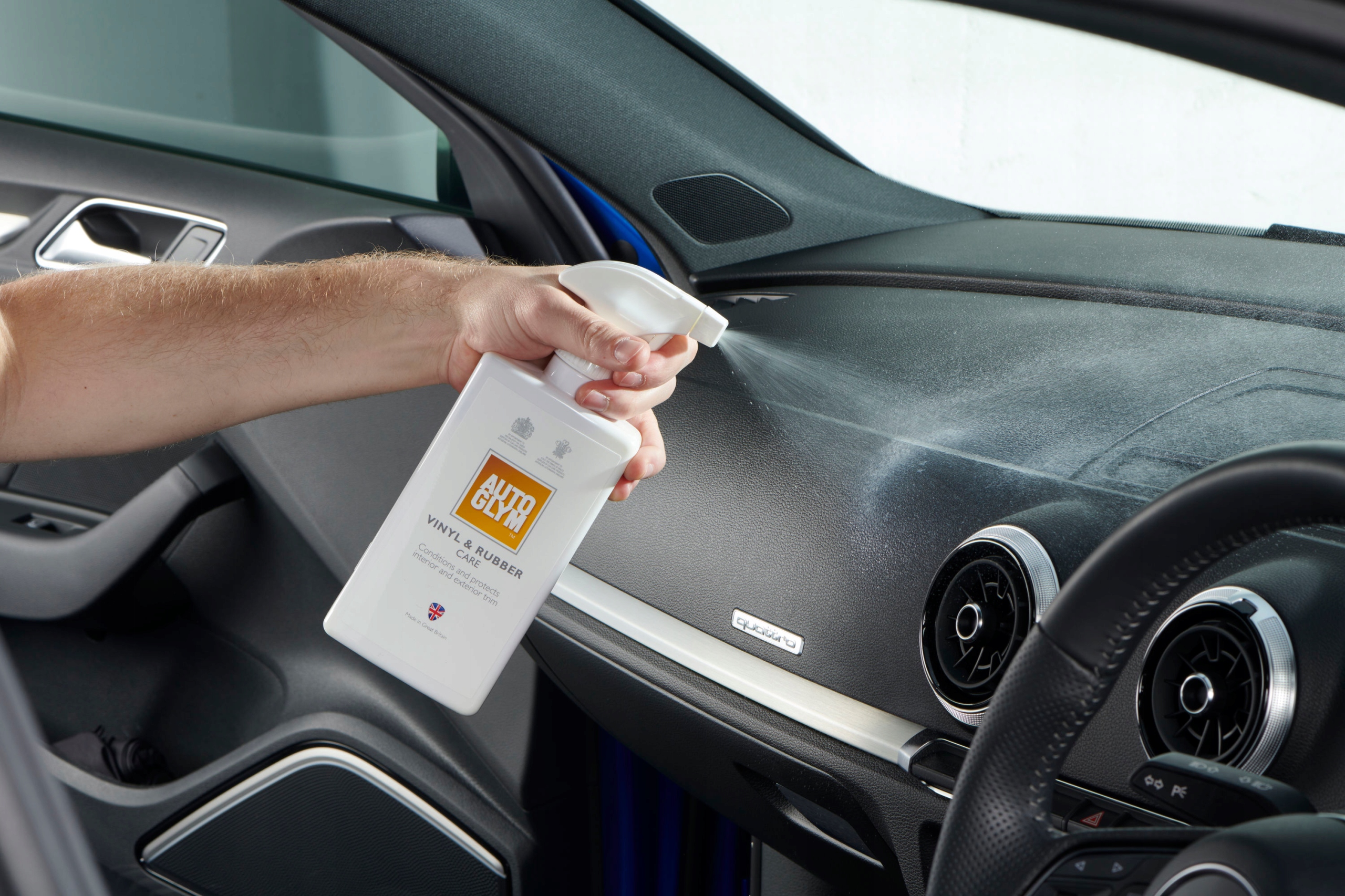 Як і фарба, салон потребує захисту. З часом сонце може призвести до того, що ці поверхні вицвіли, висохнуть і потріскаються. Догляд за вінілом і гумою гарантує, що ці ділянки залишаться захищеними. Його можна наносити для отримання сильного або легкого блиску, а також має свіжий лимонний аромат. Цей простий у використанні розчин дбайливо очищає та створює бар’єр, який відновлює та захищає вицвілі пластикові та гумові поверхні. «Vinyl & Rubber Care» також чудово допоможе змінити ваш двигун. Після чищення засобом для чищення двигуна та машини розбризкуйте вологий двигун і дайте йому висохнути.