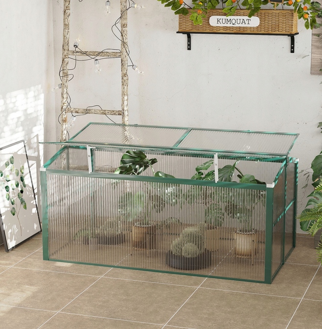 З цією теплицею 2-в-1 ви можете розвивати свою пристрасть до садівництва протягом року. Прозорі полікарбонатні панелі забезпечують максимальну проникність світла, при цьому накопичуючи тепло, щоб оптимально підтримувати ваші рослини під час проростання та зростання. Регульовані вікна на даху в теплиці забезпечують хорошу вентиляцію та полегшують доступ до ваших рослин. Відкрийте новий спосіб садівництва завдяки цій практичній теплиці! - 1 х інструкція;