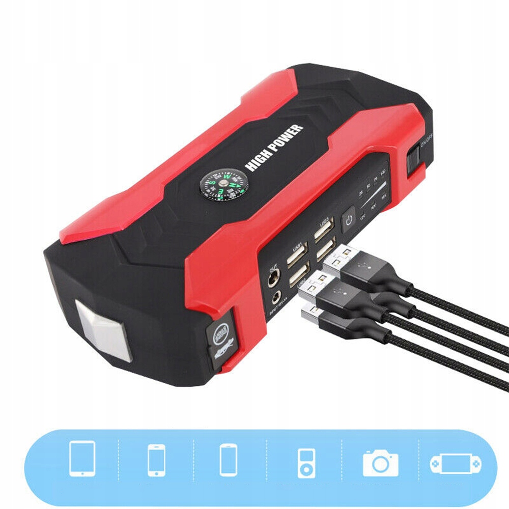 🌈🌈Не дивуйтеся виходу акумулятора з ладу! 🚗⚡ Цей професійний зарядний пристрій для стартера на 12 В обов’язковий для кожного водія та любителя подорожей. Завдяки фактичній ємності 28 000 мАг і пусковому імпульсу до 800 А ви можете впевнено завести більшість легкових автомобілів і фургонів навіть при низьких температурах. Готовий до використання за лічені секунди!