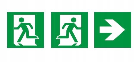 Включає 3 універсальні піктограми , які після прилипання до світильників перетворюють його в напрямку, що вказує на шлях евакуації. Більше піктограм доступно доступно.
