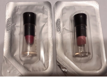 Зразки, які є предметом аукціону, знаходяться в маленьких флаконах, загорнутих у фольгу (показано на фото нижче). Назва кольору надрукована внизу кожного зразка помади.