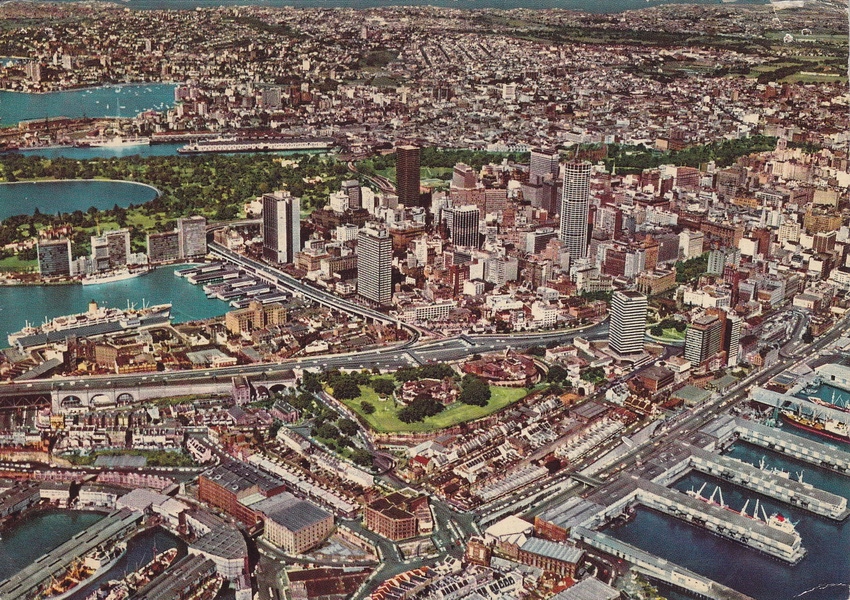 Австралія - Сідней - з пташиного погляду - ЮНЕСКО. Умова - DB (трохи знебарвлений, Пірчі після шпильки, незначне пошкодження замість штампу).