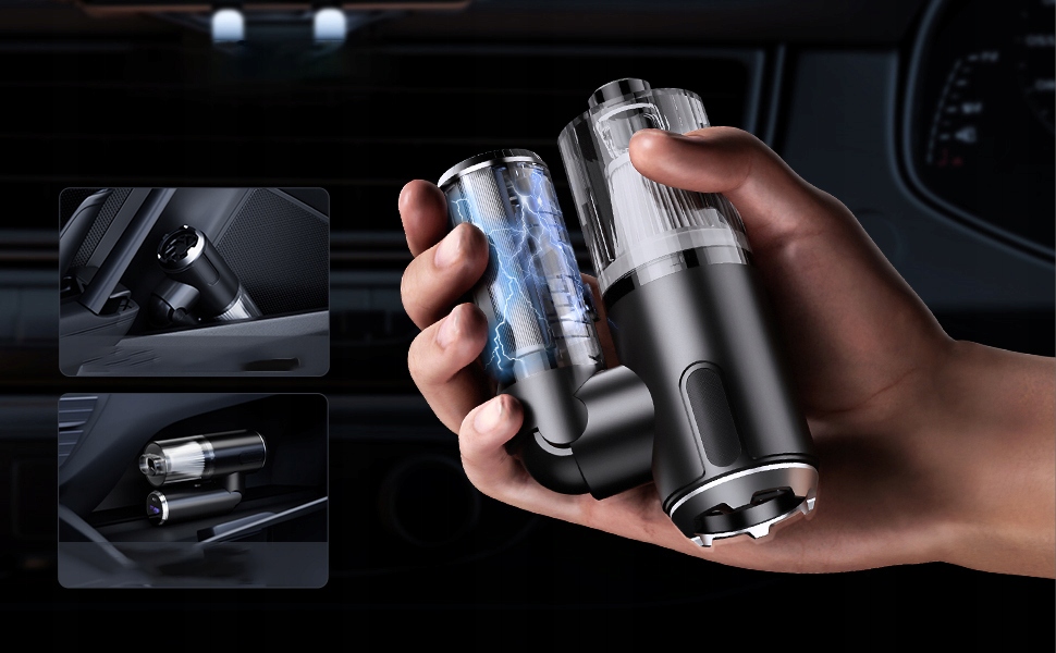 - Автомобільний пилосос оснащений прозорим контейнером для пилу великою ємністю 0,2 л, який можна обертати для розбирання та швидкого спорожнення відходів.