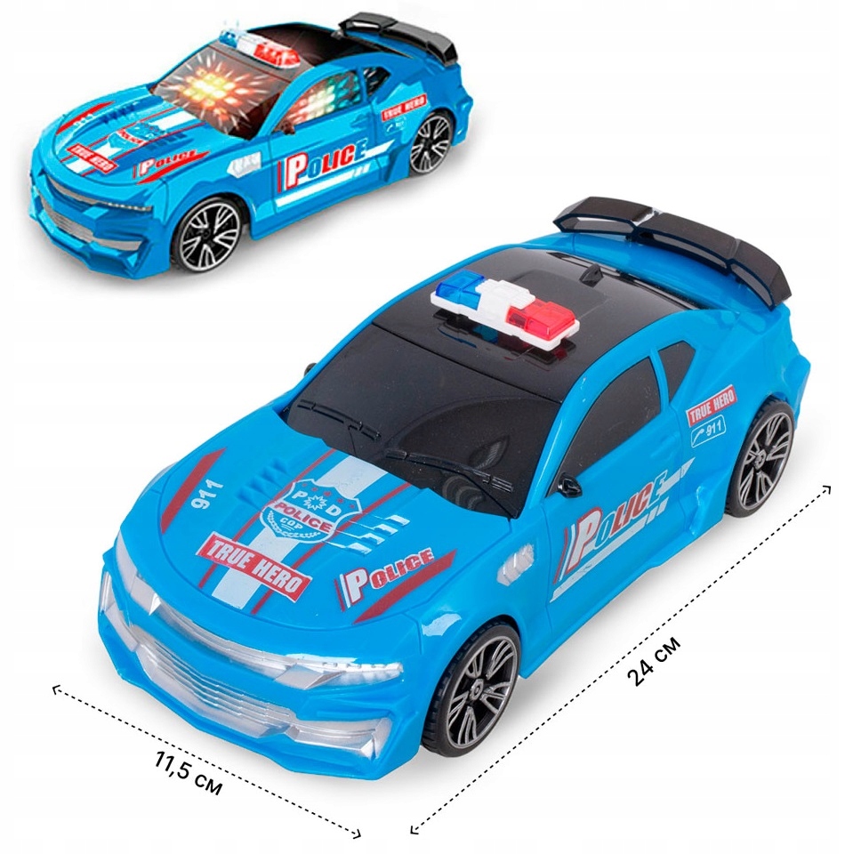 - Оснащена світловими та звуковими ефектами, вона точно імітує справжню поліцейську машину, заохочуючи дітей створювати власні рятувальні операції та погоні.
