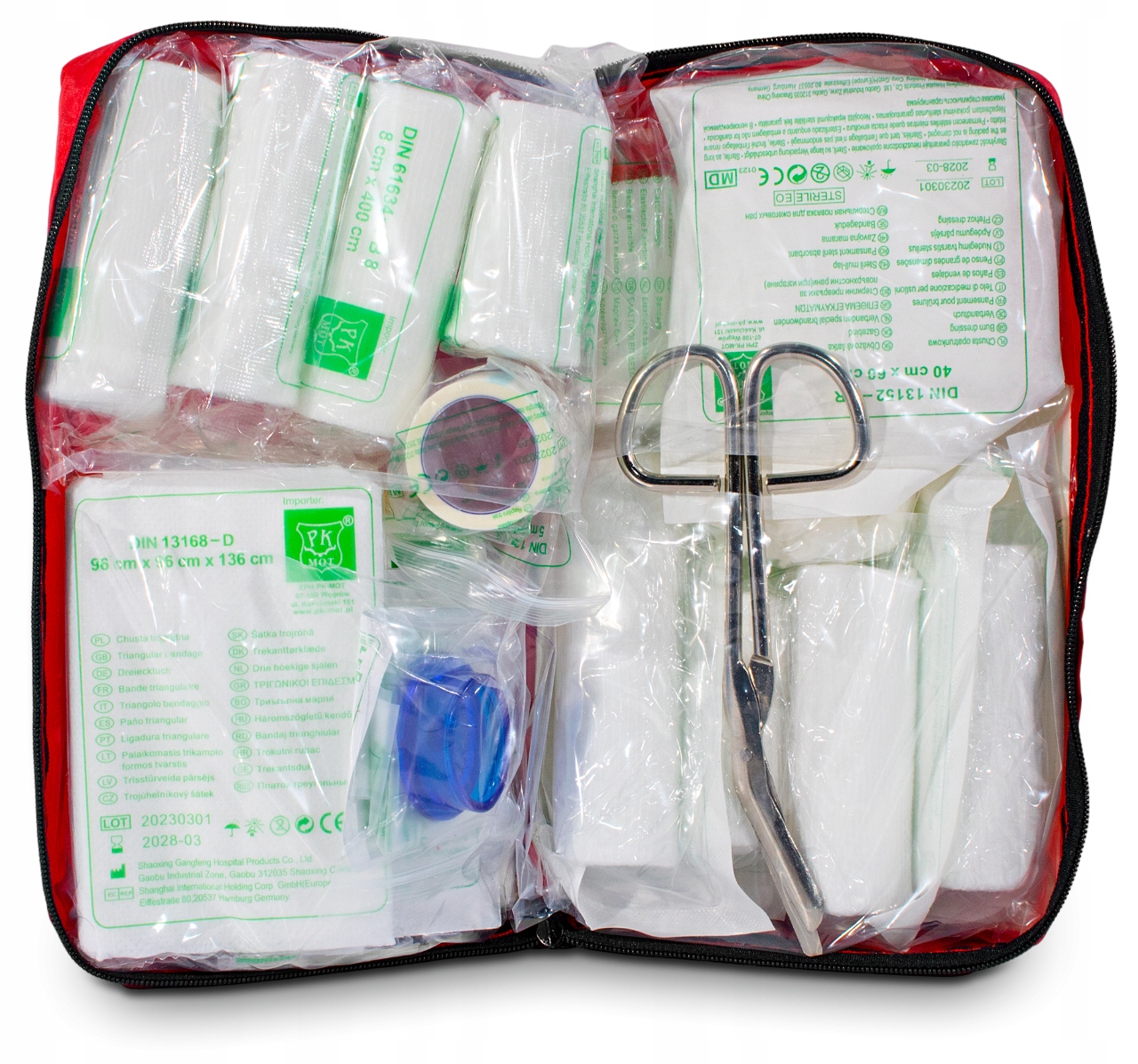 Обладнання аптечки відповідає стандарту DIN 13164: