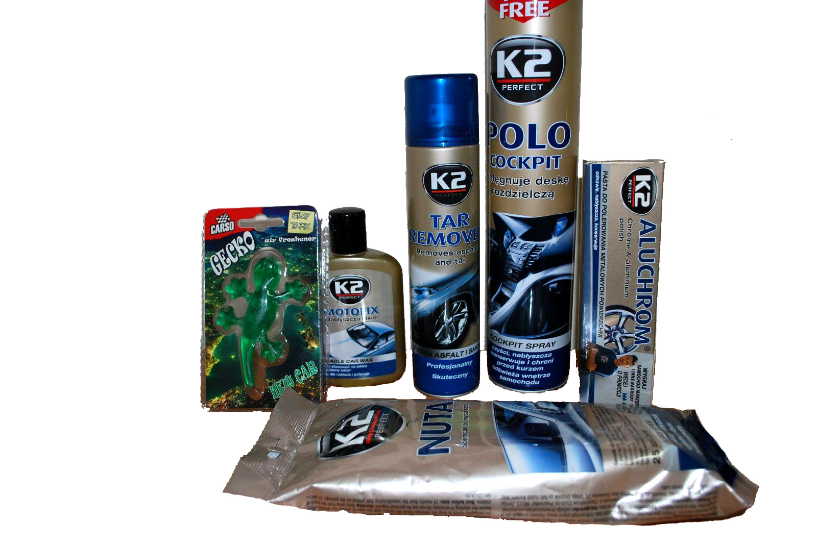 Сьогодні K2 має майже 1000 продуктів, орієнтованих на автомобільних ентузіастів і професійних користувачів. Пропозиція включає, серед іншого: автомобільна косметика та ароматизатори, гальмівні та охолоджувальні рідини, присадки до палива та масла, моторні та трансмісійні масла та продукти для професійного використання в майстернях, салонах автотехніки, автомийках та фарбувальних цехах. Продукція K2виробляється за новітніми технологіями. Інвестиції в інновації та наполеглива робота відділу розробки та досліджень призводять до постійного підвищення якості продукції, що впроваджується. Сучасні виробничі лінії здатні постачати продукцію, що відповідає найвищим світовим стандартам якості.