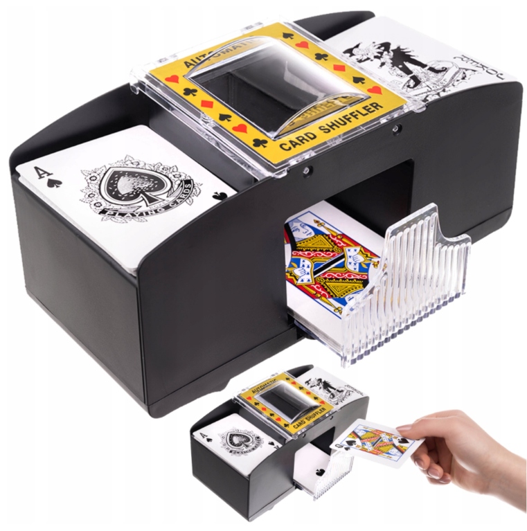 ЧЕСНЕ ЗМІШУВАННЯ КАРТ - Пристрій гарантує повністю випадкове та чесне тасування, усуваючи ризик маніпуляцій або впливу на результат гри. Гравці можуть бути впевнені, що кожна гра є абсолютно чесною.