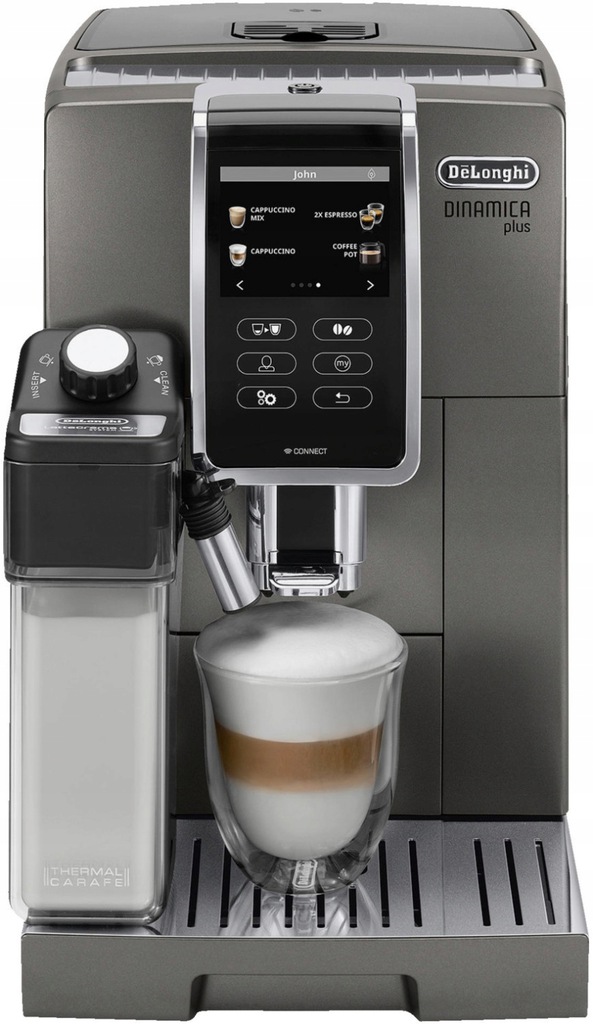 Автоматична еспресо-машина ECAM 370.95.T була розроблена, щоб задовольнити всі очікування поціновувачів кави, автоматична еспресо-машина Dinamica Plus ECAM 370.95.T вражає своєю функціональністю , елегантний дизайн і простота використання та обслуговування. Інтуїтивно зрозумілий і повністю сенсорний 3,5-дюймовий кольоровий дисплей дозволяє запрограмувати каву вашої мрії, а завдяки 3 персоналізованим профілям кожен член сім'ї може зберегти свій напій. Спеціальна програма De'Longhi Coffee Link дозволяє підключитися до кавоварки через телефон, щоб вибрати улюблений напій, зберегти власний рецепт і зручно керувати пристроєм. Для повної зручності обслуговування кавоварка має систему автоматичного очищення та видалення накипу, а її окремі елементи легко демонтуються та можна мити в посудомийній машині.